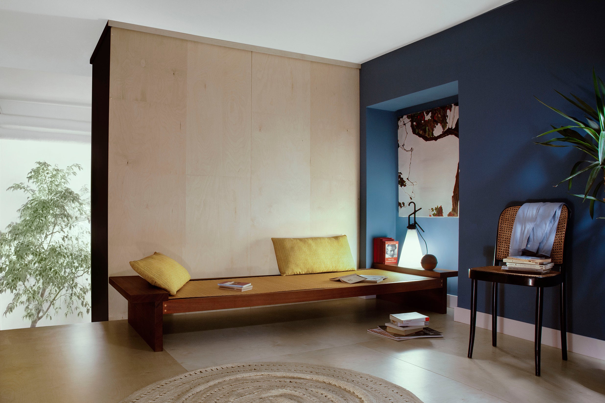 Pavimentazione e tamponature parapetti in compensato di betulla con finitura trasparente opaca.