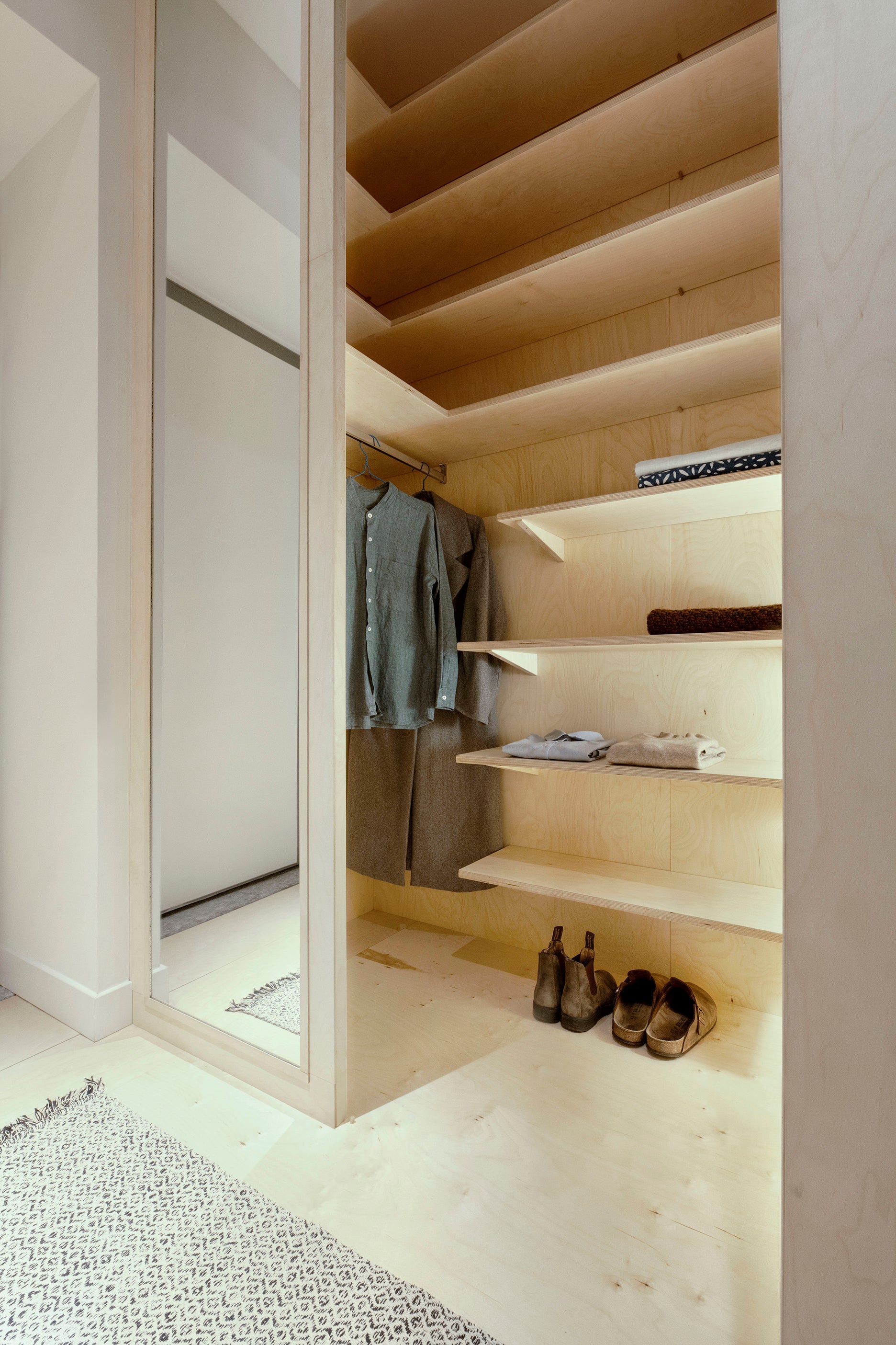 Cabina armadio in compensato di betulla e spalla in ferro.